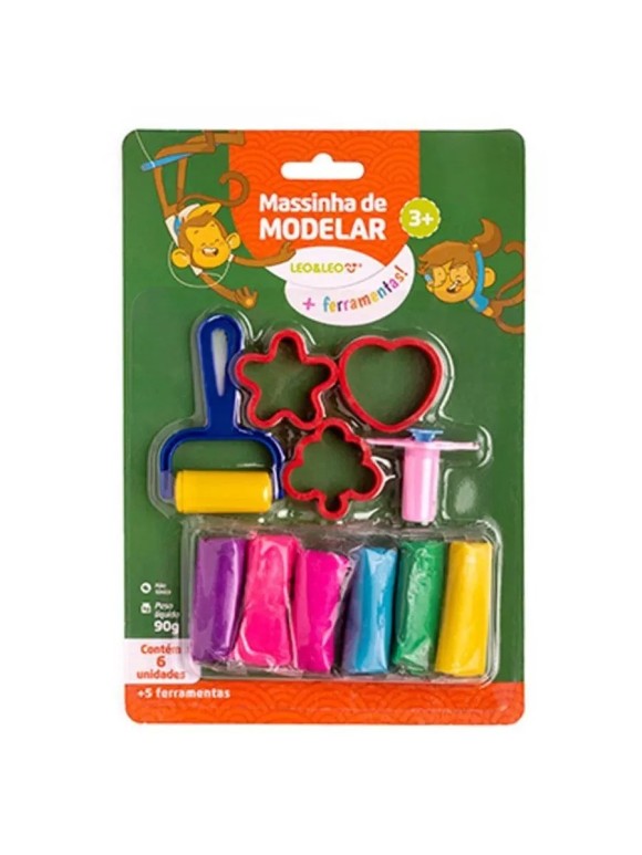MASSA DE MODELAR KIT 6 CORES MAIS 5 PECAS UN. LEO&LEO