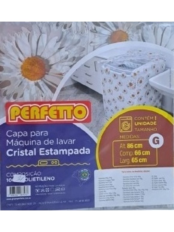 CAPA P/ MAQUINA DE LAVAR CRISTAL ESTAMPADA TAM. G 86X66X65CM UN.