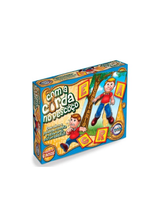 O "Jogo com a Corda no Pescoço" é uma versão do clássico jogo da forca, onde o objetivo é descobrir uma palavra secreta antes que um boneco seja "enforcado". O jogo estimula a memorização e o raciocínio rápido, sendo indicado para crianças a partir de 6 anos, embora não seja recomendado para menores de 3 anos por conter peças pequenas que podem ser engolidas.