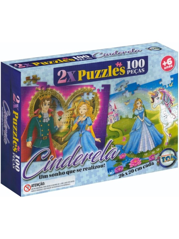 Quebra Cabeca Infantil Puzzle Cinderela com 2 Jogos e 200 Peças