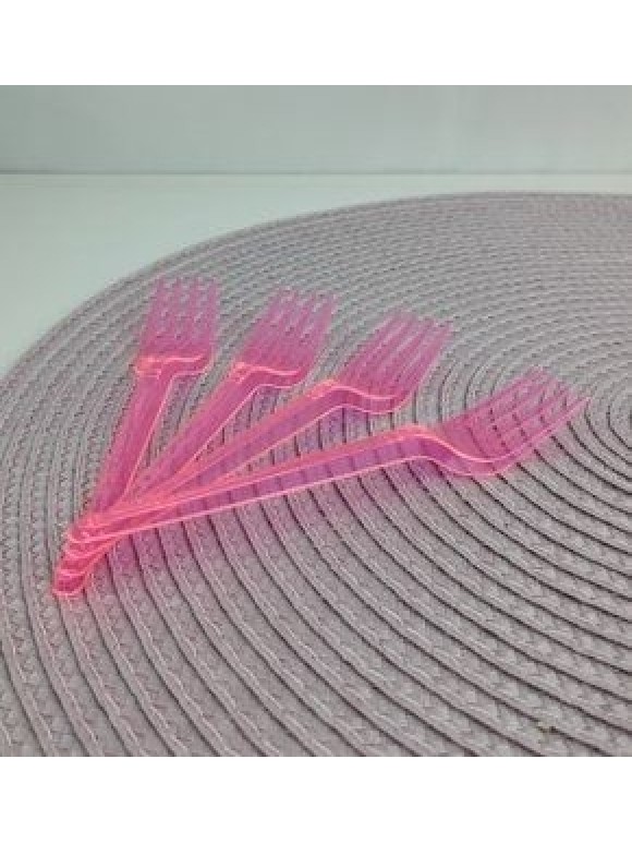 Garfo Plástico Sobremesa 25 Unidades Doces Aniversario Rosa Neon