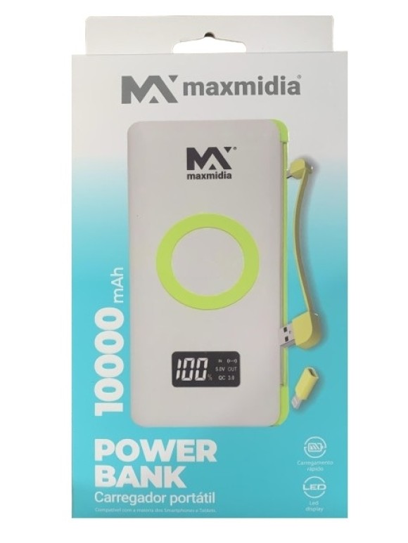 POWER BANK CARREGADOR PORTATIL 10000MAH EMBUTIDO COM LED DISPLAY UN. JMD IMPORTS