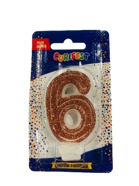 VELA SUPER NUMERO SIMPLES ROSE N 6 - (4229) UN. CURIFEST