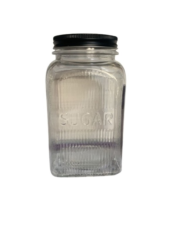 POTE DE VIDRO 1,2L SUGAR QUADRADO COM TAMPA PRETA UN. INGA