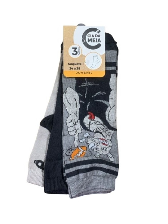 MEIA SOQUETE JUVENIL 3PARES 34-38 UN. CIA DA MEIA
