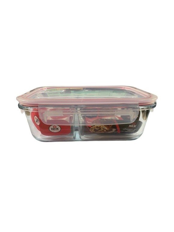 POTE HERMETICO DE VIDRO C/SAIDA DE AR RETANGULAR E C/DIVISORIA 1L 20,7X15,4X7CM UN.