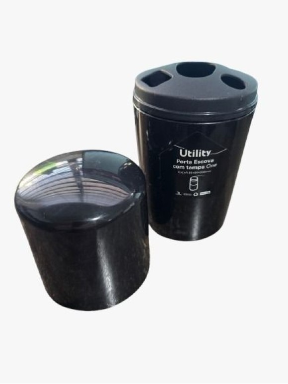 PORTA ESCOVA PRETO C/ TAMPA ONE 8,5X20CM UN.