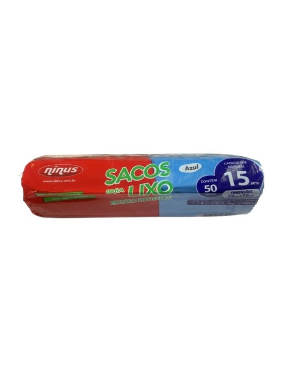 Rolo Saco de Lixo Plastico Cor Azul Capacidade 15 Litros com 50 unidades