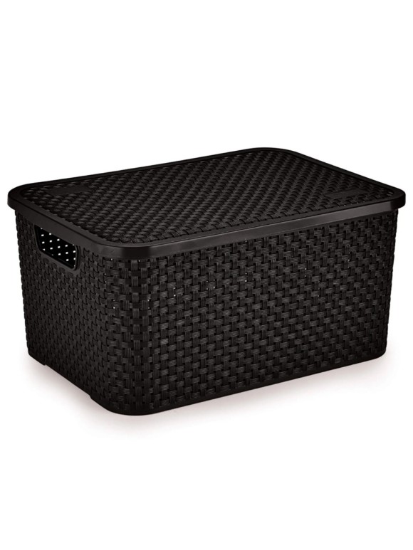 CESTO ECO ORGANIZADOR RATTAN GRANDE C/TAMPA 16L 28X19X39CM