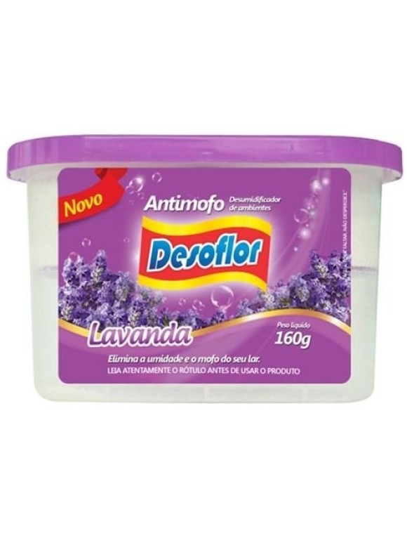 O Antimofo Desoflor é um desumidificador com agradável perfume lavanda que age absorvendo a umidade e odores desagradáveis de armários, guarda-roupas, bibliotecas, embaixo de pias, pianos, materiais fotográficos, etc. O Antimofo Desoflor age absorvendo a umidade armazenando água no pote.