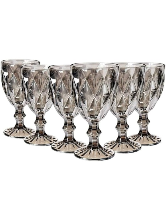 - Conjunto Taça de Diamante Fumê c/ 6 peças – elegantes e resistentes, perfeitas para vinhos, sucos e drinks. Design sofisticado em vidro lapidado que