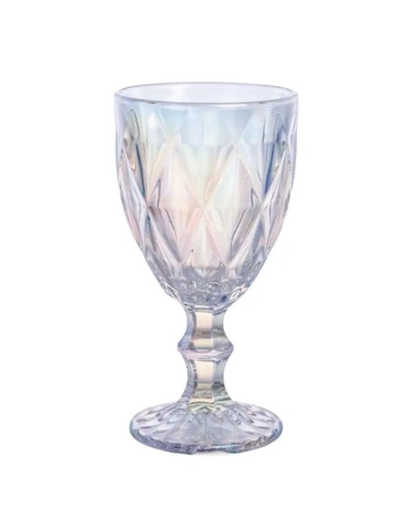 Taça elegante com efeito ópalo/luminoso que muda de cor dependendo da luz ambiente.