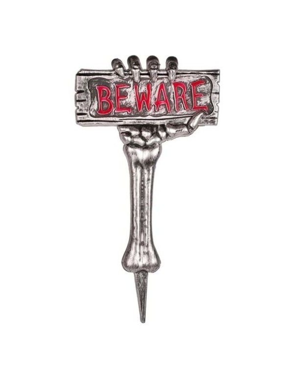 O Enfeite Estaca Esqueleto Beware 52cm é fabricado em material leve, mas resistente, garantindo praticidade e durabilidade. Seu design detalhado e a mensagem “Beware” deixam a decoração com aspecto realista e envolvente, sendo uma excelente escolha para quem deseja surpreender os convidados.