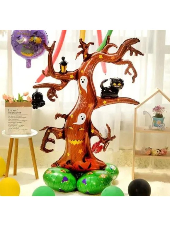 O Balão Metalizado Árvore Halloween 99x124cm c/Base 73x73cm é ideal para quem busca impacto e praticidade em uma só peça.