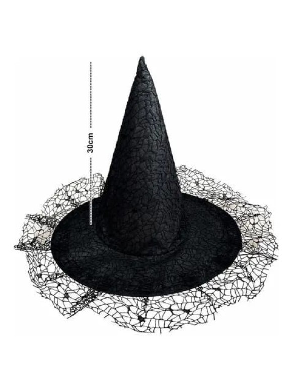 Chapéu de Bruxa Preto com Estampa de Teias – Fantasia Halloween Adulto e Infantil Acessório Decorativo