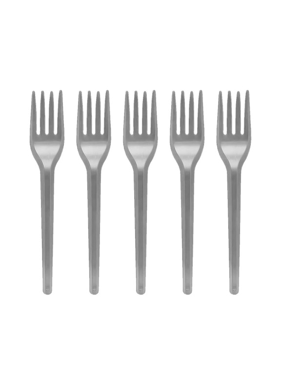 Garfo Plástico Sobremesa 25 Unidades Doces Aniversario Prata