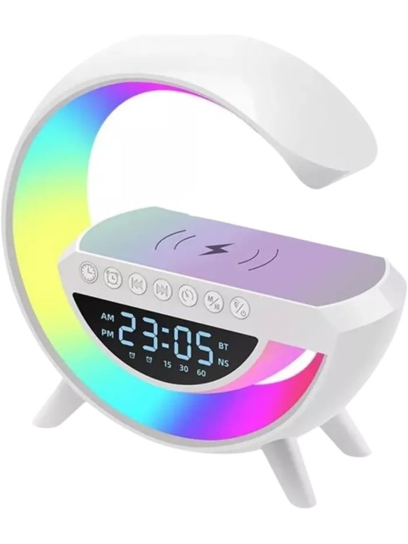 A Luminária LED G Speaker Relógio Caixa de Som Bluetooth com Carregamento por Indução e LED RGB é um produto 4 em 1 que une iluminação moderna, som de qualidade, funcionalidade de despertador e praticidade para recarregar seu smartphone sem fio. Ideal para deixar seu ambiente mais tecnológico, elegante e prático, ela é perfeita para uso em casa, no escritório ou até como presente criativo e útil.