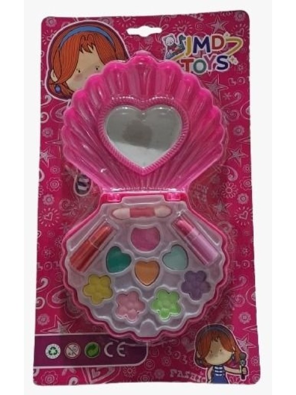 O kit é composto por mini peças de maquiagem cenográfica, todas feitas de plástico, sem pigmentos ou riscos de sujeira, permitindo que a criança simule uma rotina de beleza de forma segura. O espelhinho embutido na concha deixa a experiência ainda mais divertida e interativa, estimulando o faz de conta.