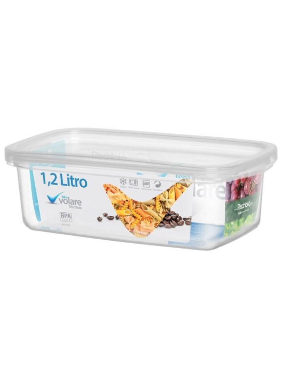 - Pote Retangular Volare 1,2L com Tampa Transparente Livre de BPA – Uso em Freezer, Micro-ondas e Lava-louças