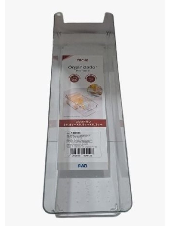 O Organizador Multiuso 29,8x9,5x6,3cm possui formato retangular, ideal para se adaptar a diferentes tipos de superfícies e espaços reduzidos. Sua estrutura é leve, mas firme, o que permite fácil manuseio e transporte.