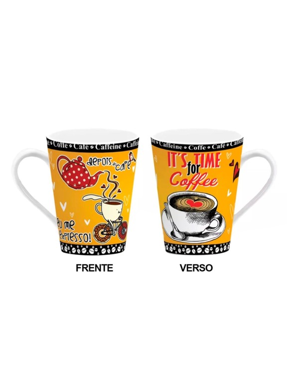 A capacidade é de 290ml, ideal para cafés, chás, cappuccinos e outras bebidas.
