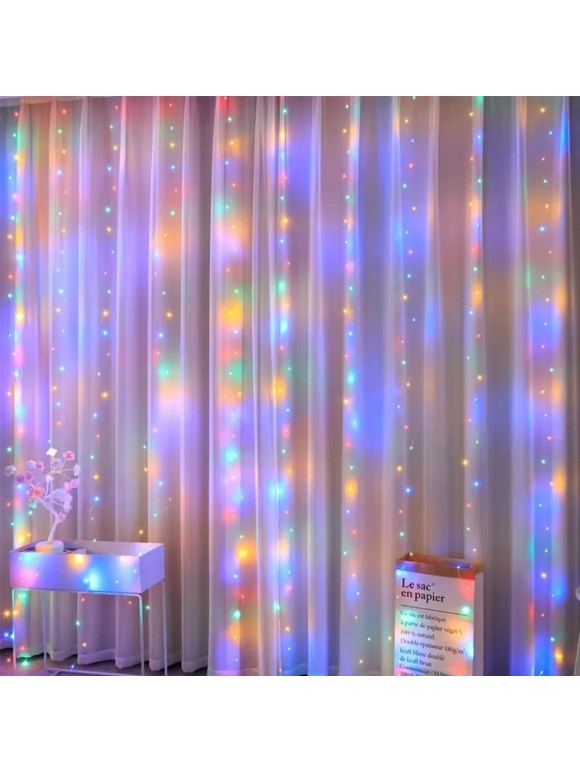 2. Cortina LED 300L 3x3m Colorida Fio Transparente Bivolt Decoração Natal e Festas