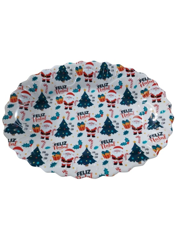 Bandeja Oval Flowers Natalina 44X32X3cm Decorativa para Mesa Posta de Natal – Servir Doces, Petiscos e Sobremesas