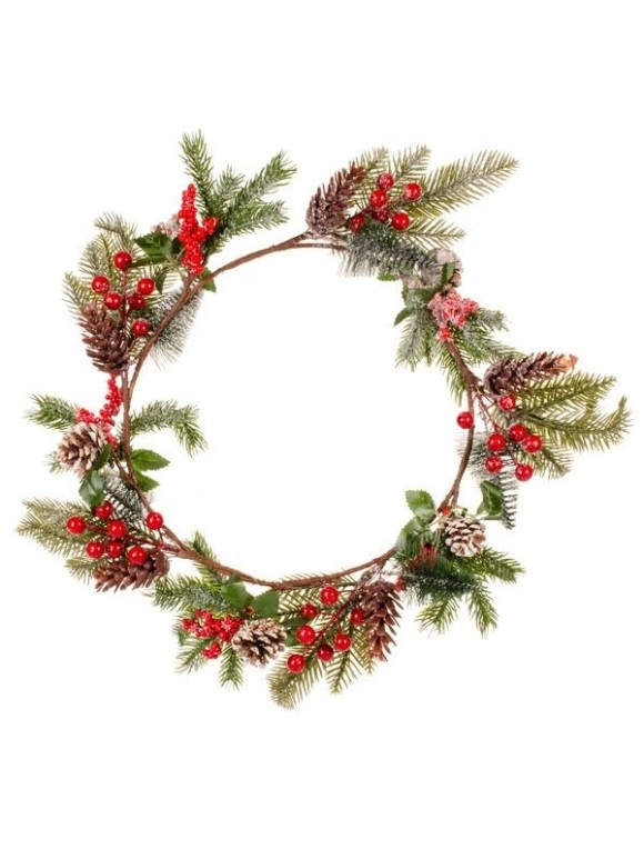 Fabricada com materiais de alta qualidade — ramos sintéticos de pinheiro e detalhes com neve artificial branca —, a Guirlanda Pinecone Snow é uma escolha perfeita para quem busca um item natalino clássico, com aparência natural e toque artesanal.