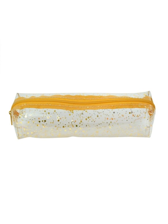 - Estojo Feminino Transparente em PVC com 1 Zíper – Modelo com Detalhes, Resistente e Moderno para Escola, Faculdade e Necessaire
