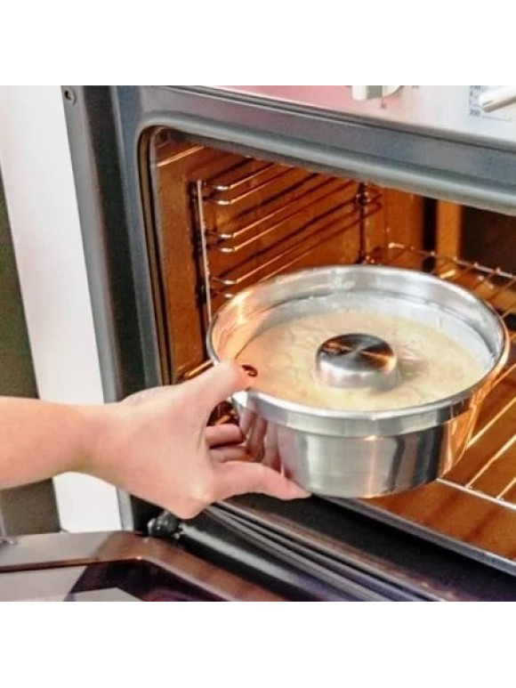 O canudo central é o grande diferencial dessa forma. Ele permite que o calor circule por toda a massa, inclusive pelo centro, evitando que fiquem partes cruas e garantindo um resultado perfeito tanto em receitas doces quanto salgadas. É ideal para bolos caseiros, pudins, tortas e sobremesas geladas.