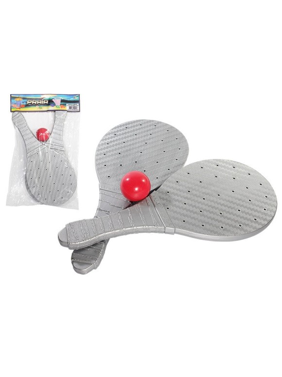 | Material | Raquetes feitas de plástico resistente; bola de vinil. |