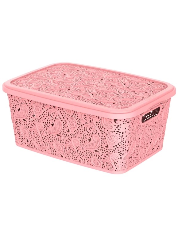 CESTO ORGANIZADOR C/ TAMPA 10L RENDA FLORAL ROSA UN.