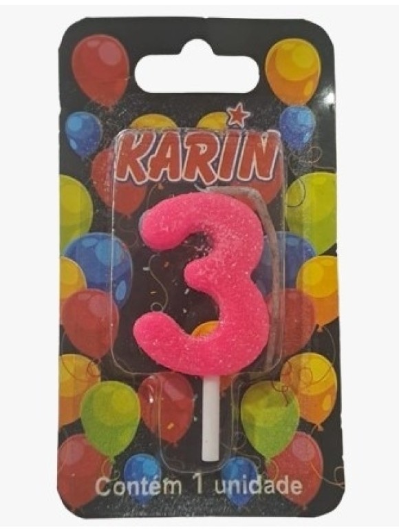 VELA DE ANIVERSARIO N.3 ROSA C/ GLITTER UN. KARIN