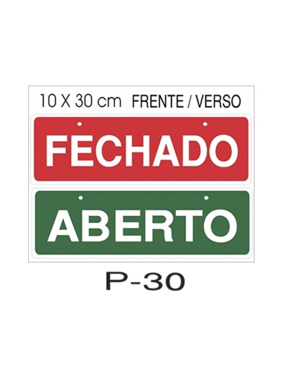 PLACA EM PS ABERTO/FECHADO 10X30CM UN.