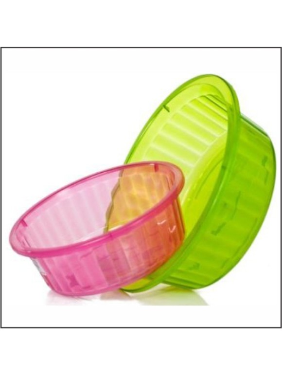 Conjunto Bacia De Plástico Redonda Canelada Tamanho P/M