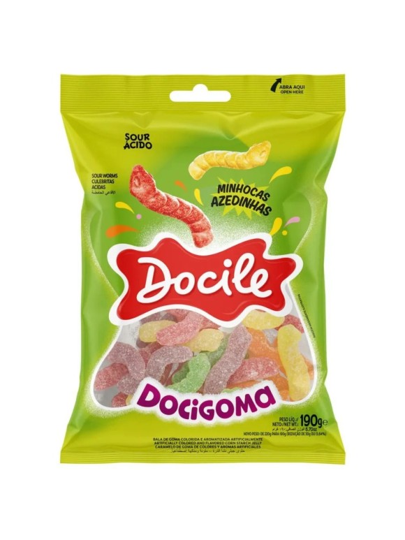 DOCIGOMA MINHOCAS AZEDINHAS 190G UN. DOCILE