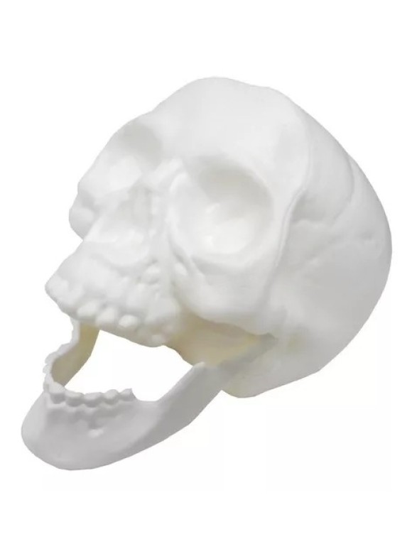 Este modelo de crânio incorpora uma quantidade impressionante de detalhes das partes do crânio, incluindo a mandíbula, osso nasal, fossa craniana anterior, osso temporal e osso esfenoidal. Detalhado e preciso, perfeito para anatomia ou referência de arte